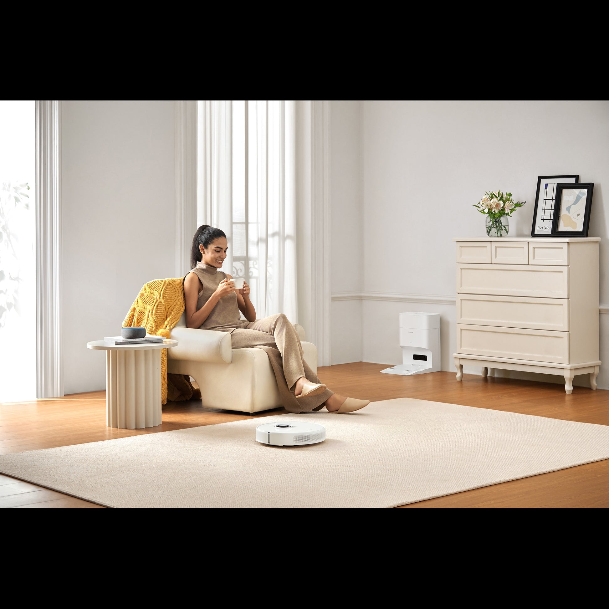 - Hands-Free Cleaning:The self-emptying base automatically collects dirt from the robot's dustbin, reducing manual maintenance.